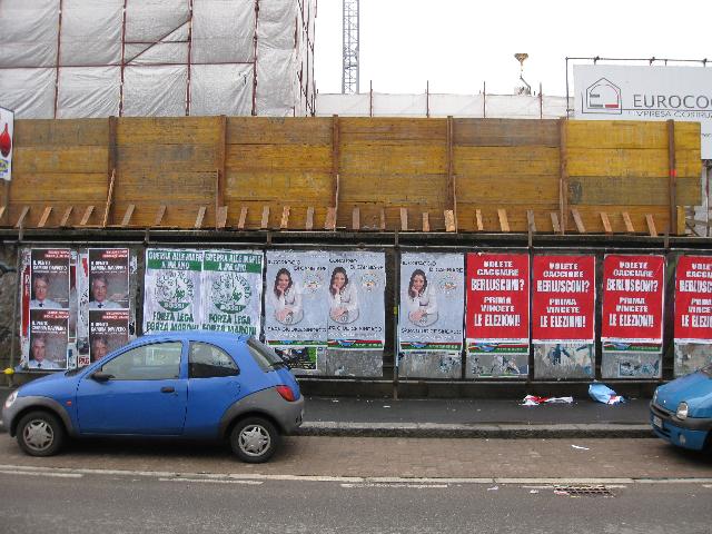 'Un'amministrazione degna di Giano Bifronte, quella di Milano'. Così Francesco Poirè, segretario dell'Associazione Enzo Tortora - Radicali Milano ed esponente della Lista Bonino-Pannella. Che continua: 'Il braccio armato della Moratti, il vicesindaco De Corato, è prodigo di comunicati entusiastici quando ci sono condanne per i writers, ma fa finta di nulla nei confronti di chi imbratta i muri con i manifesti abusivi che hanno cominciato ad invadere la nostra città. In questo momento di fatto sono state agevolate, con l'installazione anticipata degli spazi per la propaganda elettorale, le affissioni abusive'.