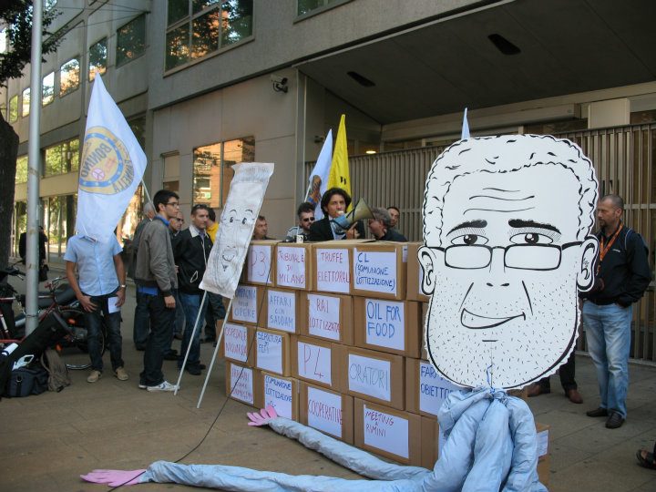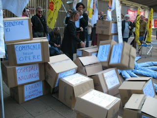 Si è tenuto stamattina davanti al Consiglio Regionale della Lombardia il presidio organizzato dai Radicali milanesi e lombardi, in occasione delle celebrazioni del XX Settembre, 'per aprire una breccia nel muro Firmigoni-Penati'. Degli enormi scatoloni costituivano i mattoni del muro, rappresentando i molti capitoli della cogestione trasversale del potere clericale e affaristico in Lombardia: dagli appalti alle firme false, dalle cooperative alla compagnia delle opere, dai Consiglieri regionali ineleggibili allo Statuto neoclericale della Regione Lombardia.