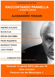 Venerdì 13 aprile alle ore 18 a Padova presso la sala Anziani nel palazzo del Comune, presentazione del libro "racconntado Pannella...a ruota libera" (mimesis edizioni).
