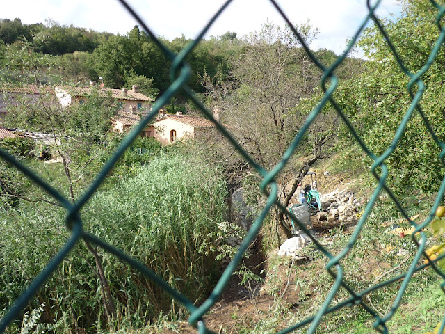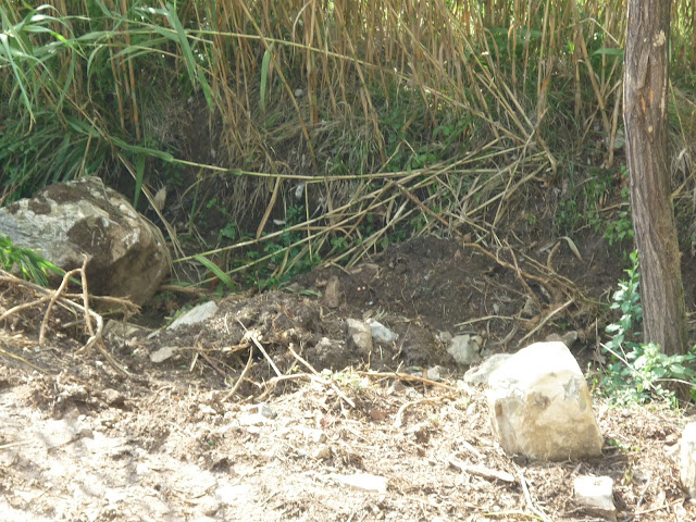 Ma il modo di procedere dei lavori non ci piace per niente. Come si vede nelle foto che alleghiamo, il corso del rio è stato interrotto perchè nel suo letto è stato collocato un grosso masso ed anche materiale proveniente dallo scavo della nuova strada. Se nelle prossime ore dovesse piovere ed il torrentello dovesse riempirsi d'acqua il rischio di esondazione sarebbe molto alto. Proprio a causa degli ostacoli costituiti dal grosso masso e dalla terra nel mezzo del letto del rio. Inoltre il "muretto" da ricostruire lungo la sponda del rio è in realtà una muraglia di sassi e cemento che certamente modificherà il corso naturale del torrentello.