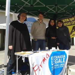 Sembrava solo ci stessero aspettando per avere la possibilità di apporre la propria firma sul progetto di legge di iniziativa popolare per l'eutanasia legale. Un grande afflusso di veneziani ha fatto da cornice ieri mattina al tavolo in piazza Ferretto a Mestre durante la conferenza stampa di Filomena Gallo, Segretaria Nazionale dell'Associazione Luca Cosioni, per la presentazione dell'iniziativa promossa da Associazione Luca Coscioni con l'adesione di Exit Italia, UAAR, Radicali Italiani, Amici di Eleonora Onlus. Ancora una volta i cittadini si sono avvicinati per sostenere la battaglia per la liberà di scelta che l'associazione Luca Coscioni e i Radicali conducono da anni, ancora una volta è apparso chiaro come i cittadini siano un passo avanti rispetto alla politica italiana e alle gerarchie d'oltre Tevere. Del resto è ormai assodato che gli italiani sono in maggioranza favorevoli sia al testamento biologico che all'eutanasia, a nordest i sondaggi dicono che quasi il 70% dei cittadini è favorevole all'eutanasia. Ma non sono solo i numeri a dirlo, sono soprattutto le parole ed il vissuto delle persone a confermare quanto sia radicata la volontà di poter scegliere per se stessi come essere curati ed anche come giungere al termine della vita. Ora bisogna proseguire perchè l'obbiettivo della 50000 firme sia raggiunto il più rapidamente possibile, diventa quindi indispensabile che in molti vogliano essere con noi e soprattutto che quanti hanno la facoltà di autenticare le firme siano disponibili a venire ai nostri tavoli per permettere ai cittadini di poter affermare e vedere riconosciuta la propria volontà. Tutte le informazioni su come aderire all'iniziativa su www.eutanasialegale.it