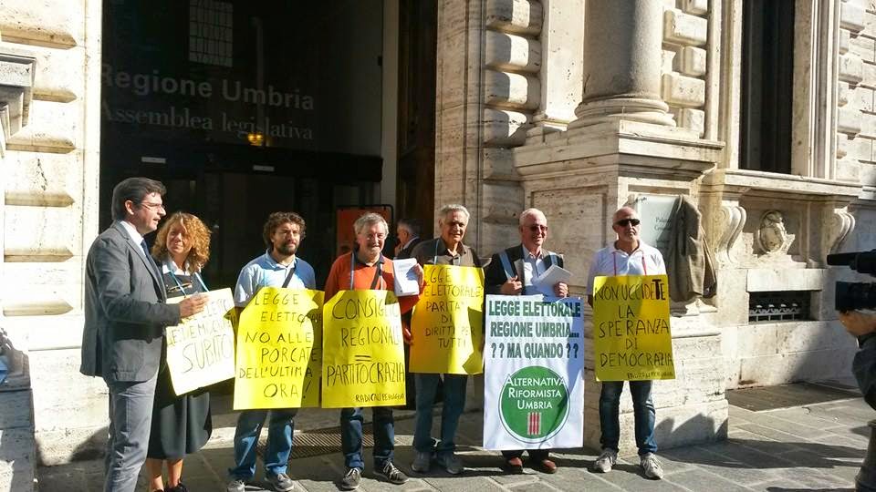 Si è svolta oggi di fronte il consiglio regionale dell’Umbria il preannunciato presidio promosso da radicaliperugia “legge elettorale subito”.