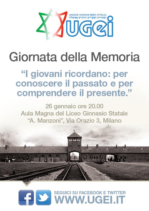 Domani, vigilia della Giornata della Memoria, l'Unione Giovani Ebrei d'Italia [4] e il Liceo Manzoni di Milano [5] organizzano una serata per ricordare alle nuove generazioni di non dimenticare. Durante l'incontro verrà proiettato il film 'Fratelli d'Italia?' di Mariella Zanetti e Dario Barezzi.